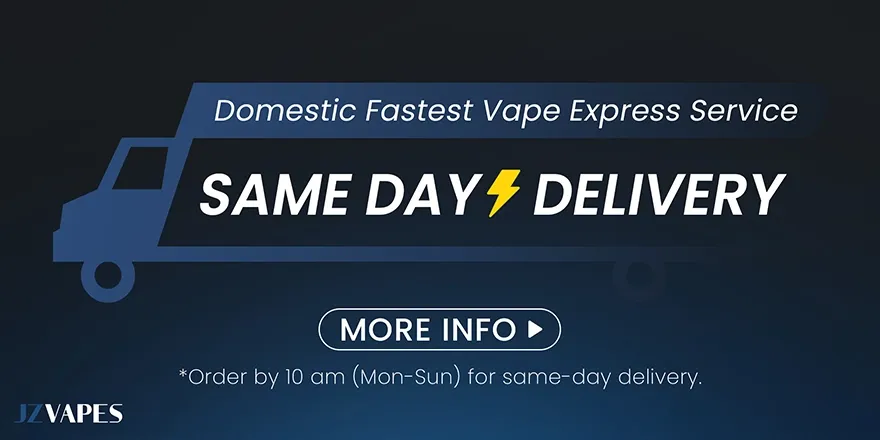 Same-day delivery now available within 8 hours in select markets! See if you're eligible by clicking the Sameday ⚡️ icon in the menu. Available only at JZVapes. | Current average regular delivery time for all orders is 1-2 business days.