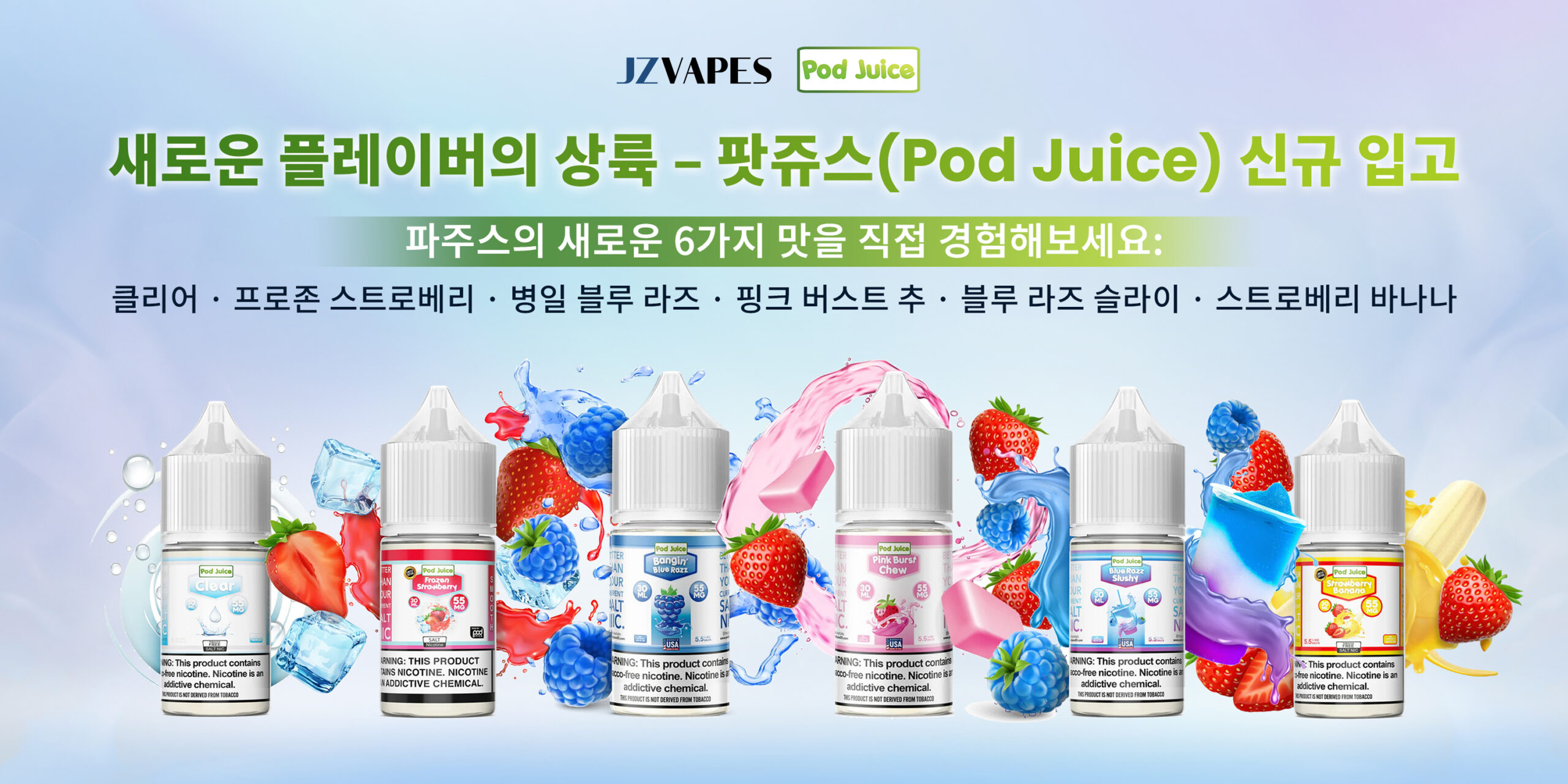 JZVapes에서 판매하는 모든 제품들은 니코틴이 포함되어있습니다. 전자담배는 니코틴 중독을 일으킵니다. 확인 버튼을 누르면 본인이 만 19세 이상임을 증명하며 동의합니다. (캐나다와 대한민국 최소 담배 구매가능 연령)