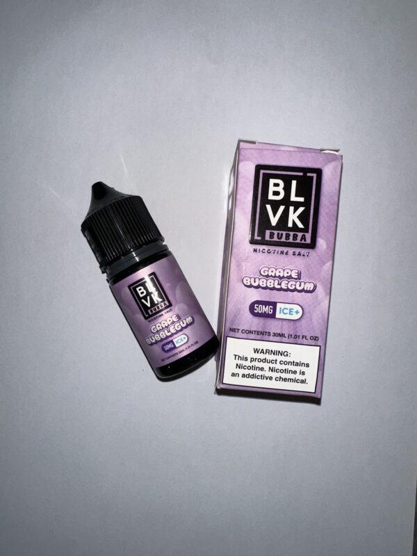 A cool twist on classic candy — BLVK Bubba Grape Bubblegum Ice combines bold grape, chewy gum, and icy menthol. 5% SaltNic. Now shipping same-day from JZVapes Korea.